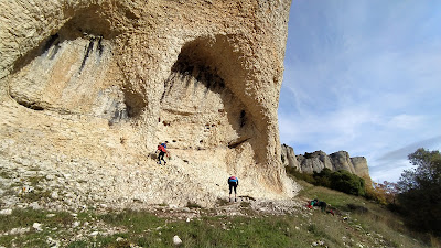 Hoy no llueve ¡Qué novedad! Después de 8 años de lluvia (perdón, 8 días), nos habíamos olvidado de lo bonito, cálido y maravilloso que es el sol de diciembre. Teníamos una asignatura pendiente en esta sierra, donde pagamos la novatada de nuestra primera incursión hace dos semanas (ver entrada anterior), de modo que teníamos claro el objetivo: Localizar el sendero que lleva a las Cuevas del Reloj y el Ojo de San Prudencio, unas curiosas formaciones en las paredes que se levantan encima de Ganuza.