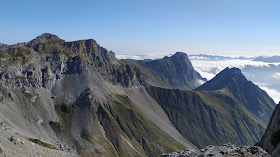 La Paquiza es una montaña bien guapa, pero le hacen sombra muchas otras así que solo encontramos a dos montañeros almorzando en la cumbre. Nos costó un pelín remontar los cuestarrones de hierba hasta arriba pero el panorama también nos recompensó: Todas las cumbres de la región empezando por el Ori, justo detrás de Lacarchela, luego el Lákora entre las nieblas provenientes del mar de nubes que ocupaba toda la France de la Patrie, el Arlas, el Anie, la Mesa, nuestro Petrechema, el Acherito... Debajo nuestra Belagua de una parte y Zuriza de la otra. Una pasada.
